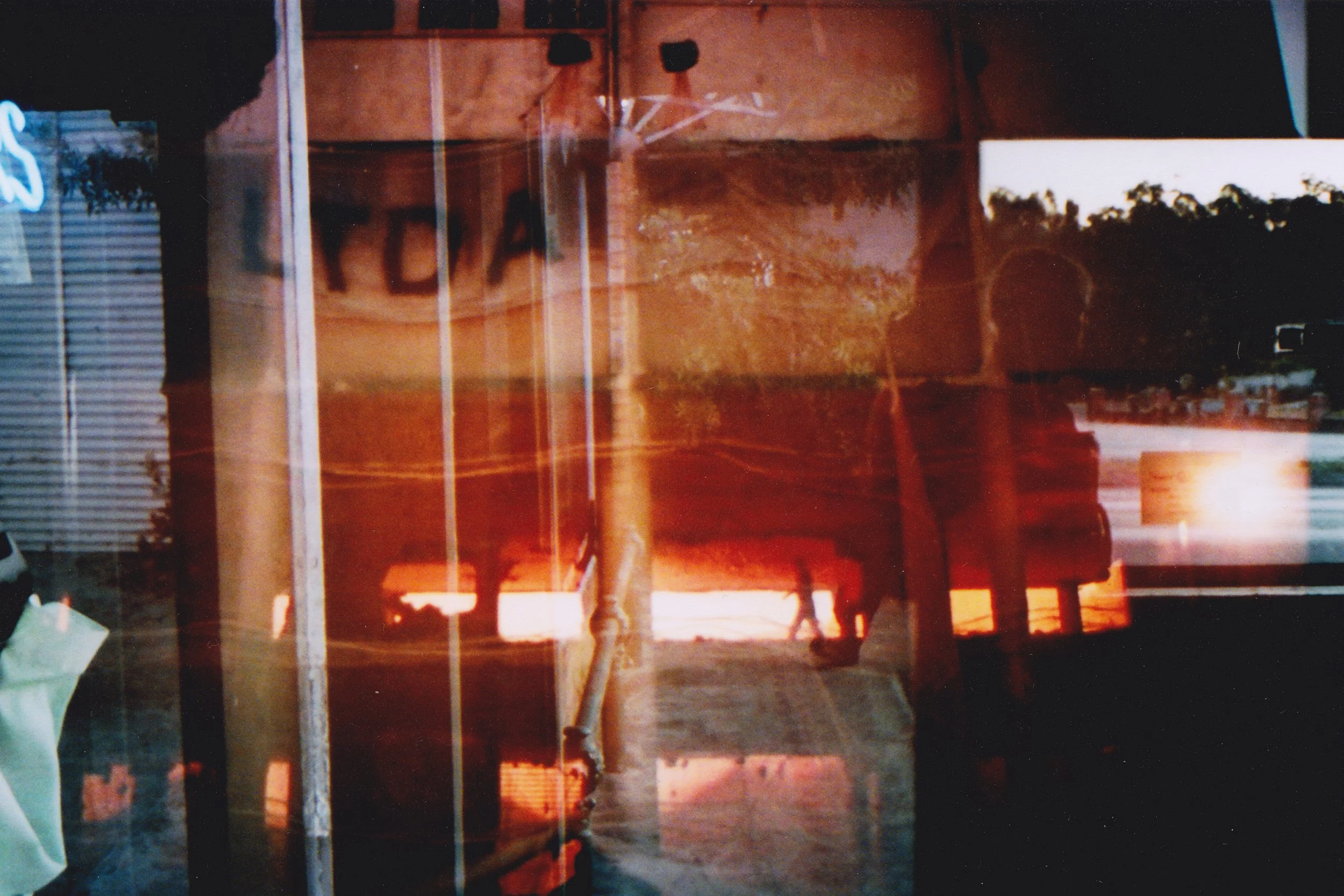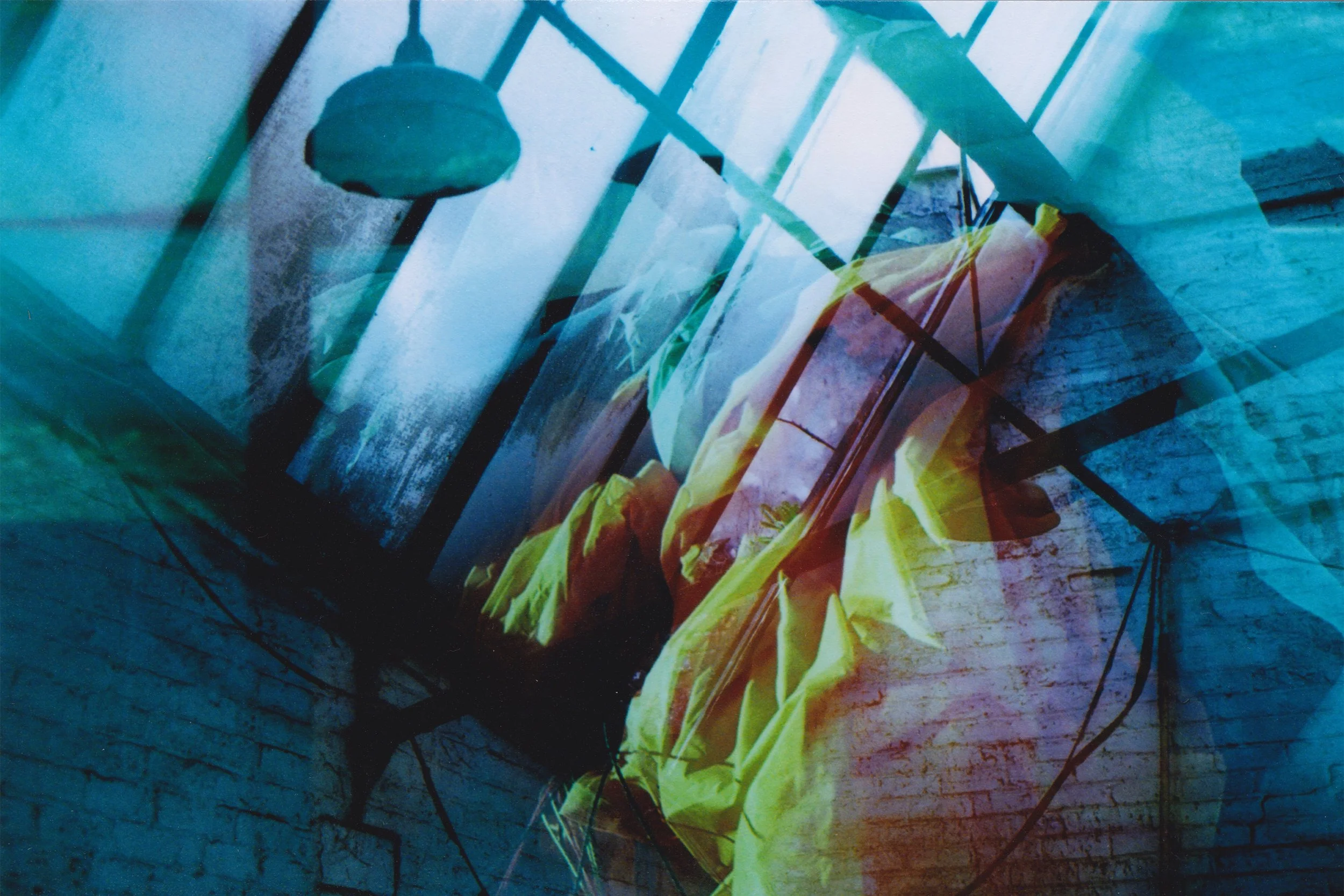 Using a 35mm film camera, and an arbitrarily imposed process of chance, colour film is double exposed to a range of televisual media and ‘real-world’ sources, to the point where origins are indistinguishable (even for the artist himself). Images dissolve into one other, creating diaphanous veils of mediated memories, simultaneously embodying certain characteristics of photography, yet confounding our expectations of the medium.