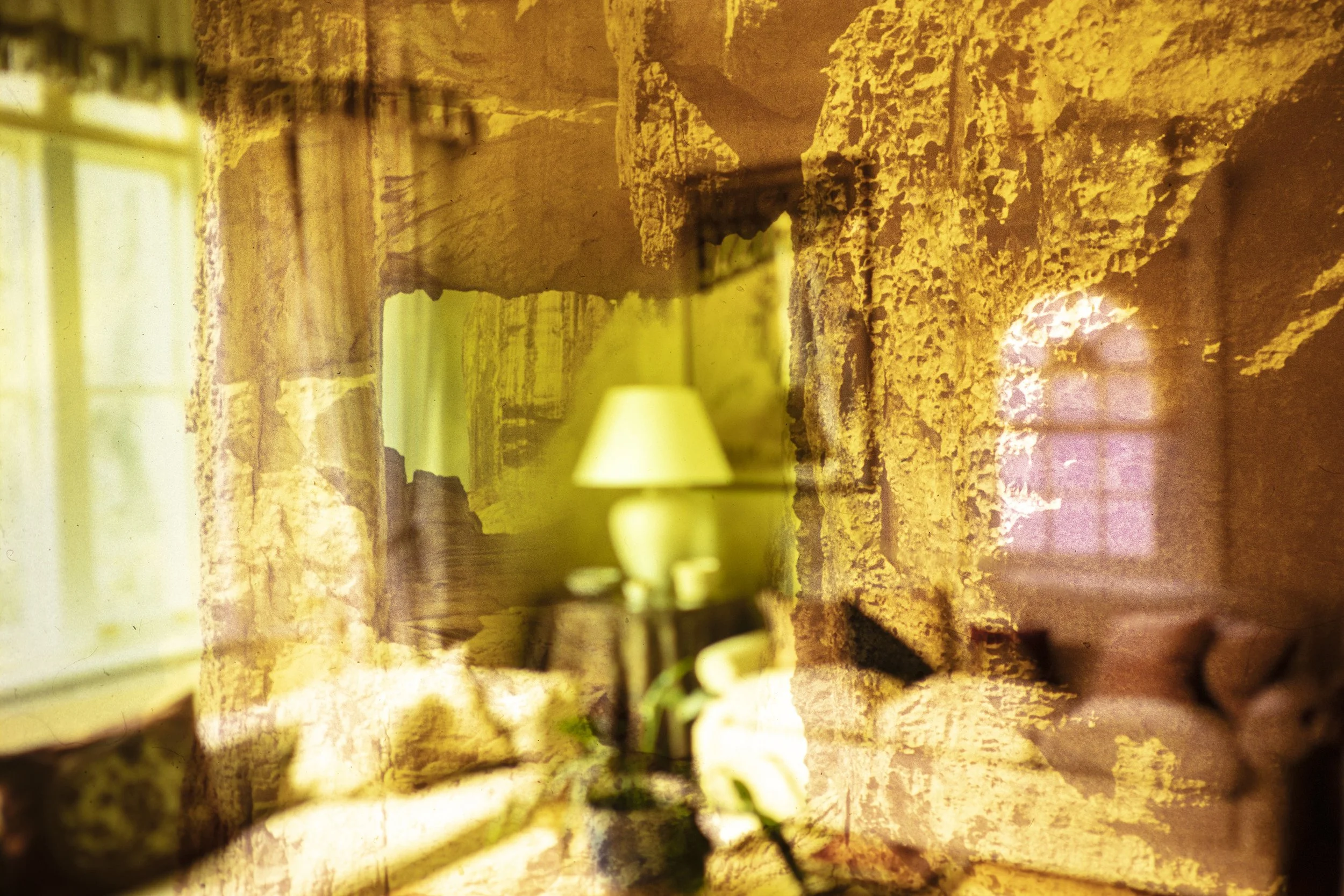 Made entirely with a collection of over 20,000 35mm photographic slides sourced from house clearances, each picture is produced by photographing slides stacked together on a light box. Time, place and memory are compressed into a single visual plane. The process references historical analogue manipulation processes dating back to the combination printing techniques of Pictorialism. But rather than the pursuance of realism, Drift instead reveals the seams of the process through its deliberate attempts to destabilise pictorial space. The two original photographs become entangled, yet immediately estranged as they vie for dominance. From within this conflict, new hallucinogenic and disorientating visual topographies emerge, suspended precariously between representation and abstraction. The work reflects on the illusory and corruptible equivalences between memory and photography, and their elastic correspondences with reality.
